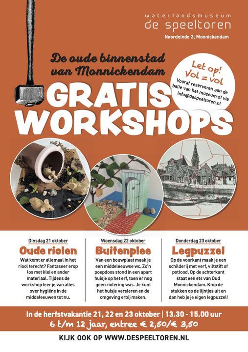 Het museum heeft drie workshops voor de jeugd ontwikkeld, die te maken te hebben met de oude binnenstad van Monnickendam. Zij sluiten aan bij de lopende tentoonstelling Monnickendam gered van de sloophamer.