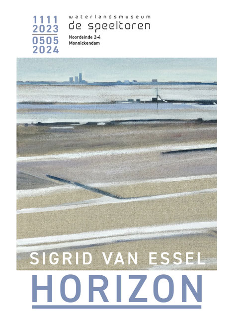 In de Kunstzaal van Waterlandsmuseum de Speeltoren werd op 11 november de tentoonstelling ‘Horizon’ geopend, een solo-expositie van Sigrid van Essel. De uit Zwitserland afkomstige kunstenaar is geïntrigeerd door het vlakke Hollandse Landschap en laat in haar schilderijen de weidsheid van ons waterrijke land zien. Drassige weilanden met aan de horizon een stadscontour.